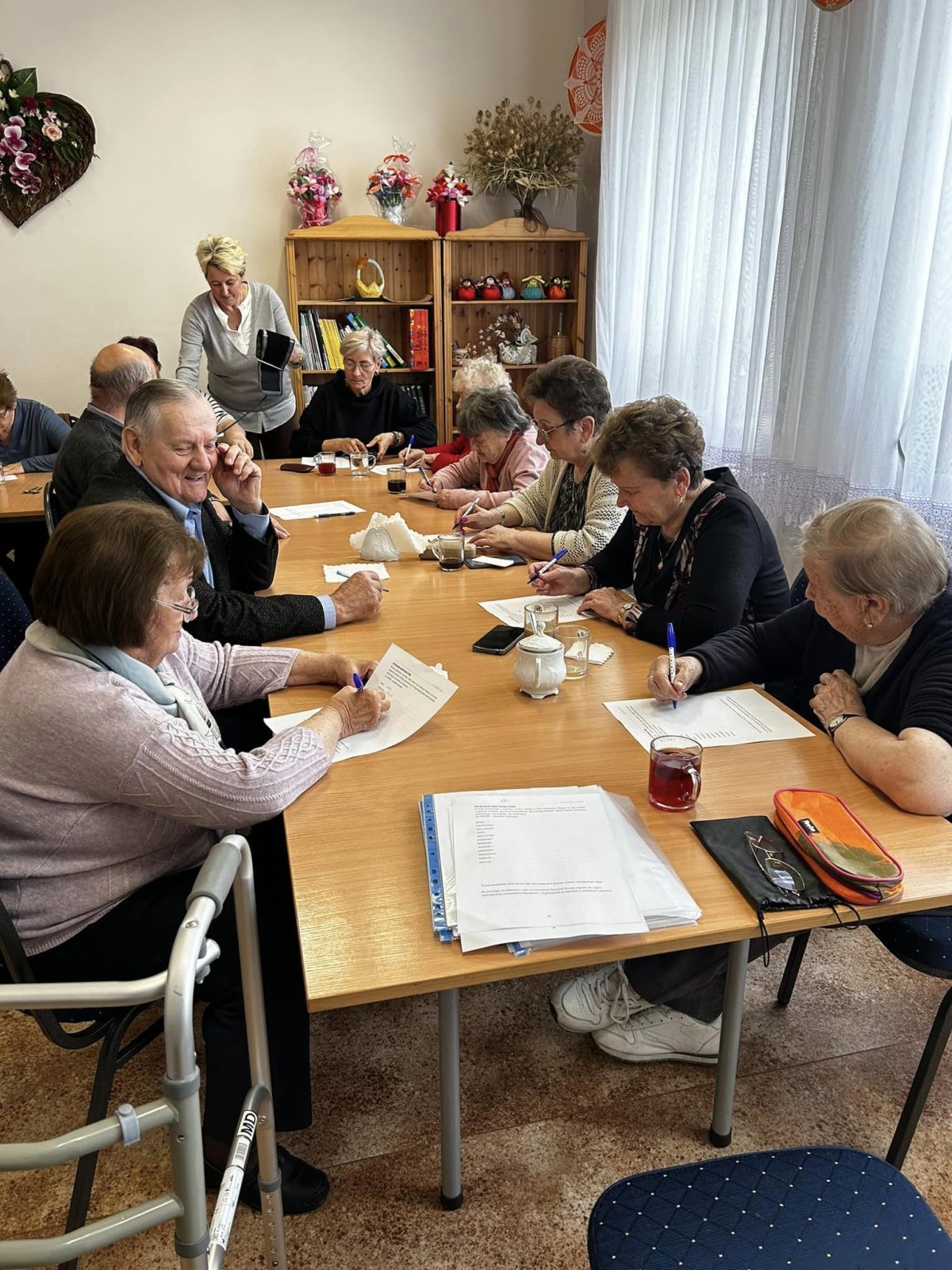 Marzec - kolejny miesiąc naszego projektu „Prowadzi nas piosenka - edukacja partycypacyjna osób po 60 roku życia z muzyką w tle” minął bardzo szybko i obfitował w wydarzenia. 14.03 odbyła się druga część warsztatu „Swoje prawa znam i wiem jak z nich korzystać”. 20.03 seniorzy wzięli udział w kolejnym warsztacie z dykcji i logopedii artystycznej a 25.03 w zajęciach poświęconych autopromocji i wizerunkowi. Cały miesiąc dwa razy w tygodniu uczestniczki i uczestnicy projektu rozwijali swoje kompetencje wokalne pracując z instruktorem zespołu panem Romanem Bissem. Z racji tego, że marzec to nowa, wiosenna energia wszystkie na wszystkich zajęciach panowała miła, serdeczna atmosfera. Seniorzy przygotowywali się do Świąt Wielkanocnych i po naszych zajęciach projektowych mieli jeszcze siłę i energię na wspólne wykonywanie tradycyjnych palm.