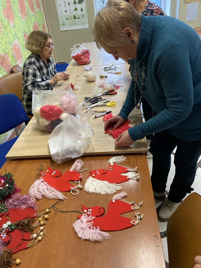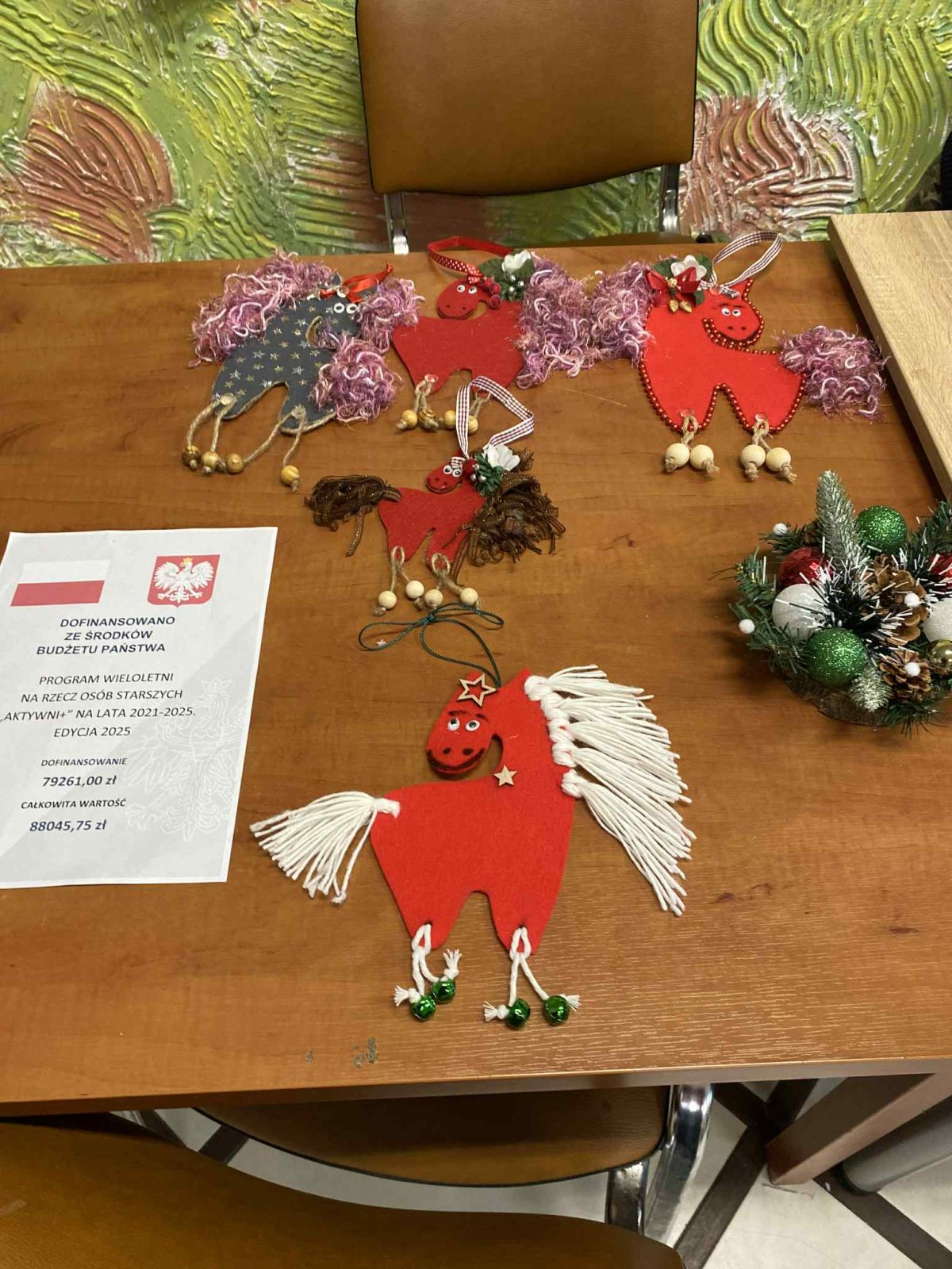 Na podsumowanie projektu dofinansowanego ze środków rządowego programu wieloletniego na rzecz Osób Starszych „Aktywni+” na lata 2021-2025 - Edycja 2025” noszącego tytuł "Moja tęsknota, kareta złota... - przez współpracę i sztukę do zwiększenia partycypacji społecznej seniorów polskich i ukraińskich" przyjdzie jeszcze czas po świętach. Projekt obfitował w wydarzenia i kończy się 31.12.2025 roku. Tymczasem prezentujemy piękne ozdoby choinkowe wykonane przez uczestników oraz koniki symbol szczęścia na nadchodzący rok 2026, który ma być „rokiem konia”