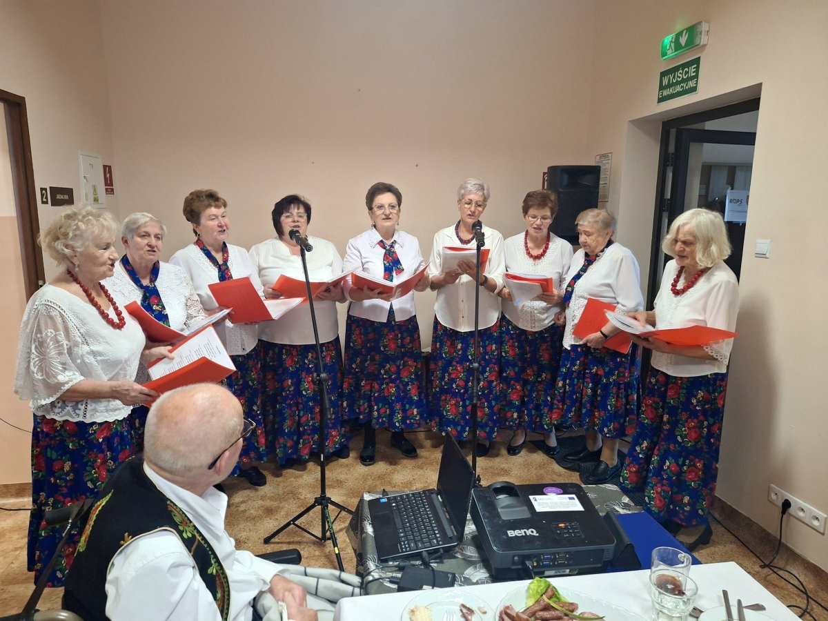 W środę 16.10.2024 roku odbyło się ważne wydarzenie, na którym mieli okazję zapoznać się ze sobą wszyscy uczestnicy projektu. Wydarzeniem tym był Plener Artystyczny w gminie Kazimierz Dolny połączony ze spotkaniem grup roboczych. Po powitaniu grup z Gościeradowa i Konopnicy w Kazimierzu Dolnym udaliśmy się na zwiedzanie miasta. Odwiedziliśmy m.in kazimierską farę ze słynnymi organami. Kolejnym etapem pleneru było połączone z obiadem spotkanie warsztatowe i wspólne śpiewanie oraz biesiadowanie(i tańce) wszystkich uczestniczek i uczestników projektu. W spotkaniu wzięły udział zaproszone panie z KGW „Jeziorzanki” oraz członkowie zespołu „Dziesiątki” z Bochotnicy. Swoje spotkanie miały też grupy robocze. Atmosfera była wspaniała i przekonaliśmy się po raz kolejny, że muzyka łączy i integruje doskonale nawet przy tak dużej liczbie osób. Z niecierpliwością czekamy na kolejne spotkanie obydwu grup, które już w listopadzie. Zapraszamy do zapoznania się z galerią zdjęć.