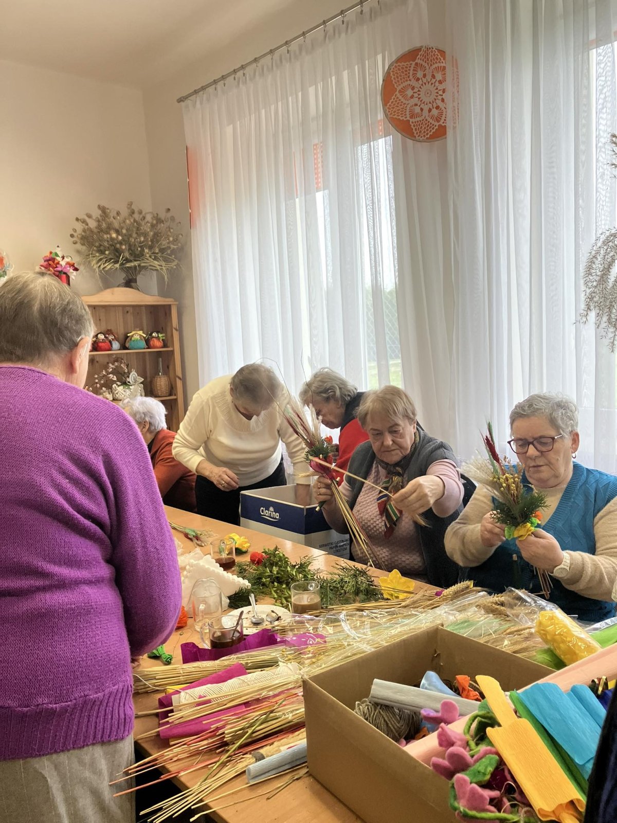 Marzec - kolejny miesiąc naszego projektu „Prowadzi nas piosenka - edukacja partycypacyjna osób po 60 roku życia z muzyką w tle” minął bardzo szybko i obfitował w wydarzenia. 14.03 odbyła się druga część warsztatu „Swoje prawa znam i wiem jak z nich korzystać”. 20.03 seniorzy wzięli udział w kolejnym warsztacie z dykcji i logopedii artystycznej a 25.03 w zajęciach poświęconych autopromocji i wizerunkowi. Cały miesiąc dwa razy w tygodniu uczestniczki i uczestnicy projektu rozwijali swoje kompetencje wokalne pracując z instruktorem zespołu panem Romanem Bissem. Z racji tego, że marzec to nowa, wiosenna energia wszystkie na wszystkich zajęciach panowała miła, serdeczna atmosfera. Seniorzy przygotowywali się do Świąt Wielkanocnych i po naszych zajęciach projektowych mieli jeszcze siłę i energię na wspólne wykonywanie tradycyjnych palm.